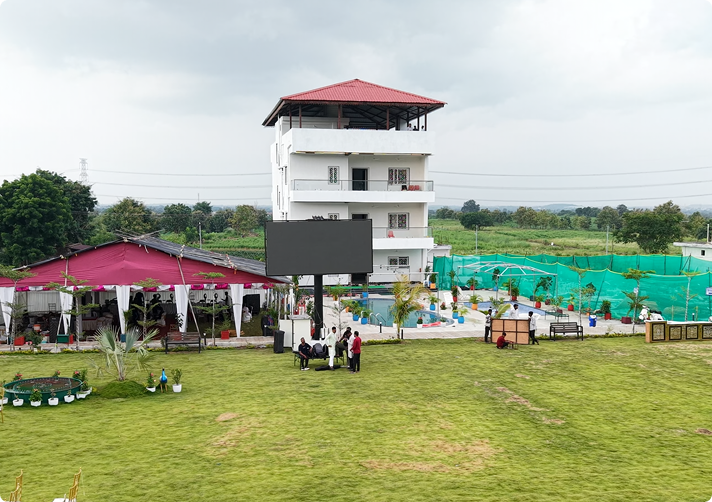 Nehjit Resort is designed exclusively for weddings, corporate events, cultural ceremonies, and family celebrations. Spread across lush natural surroundings, it offers elegant halls, lawns, and premium event support services